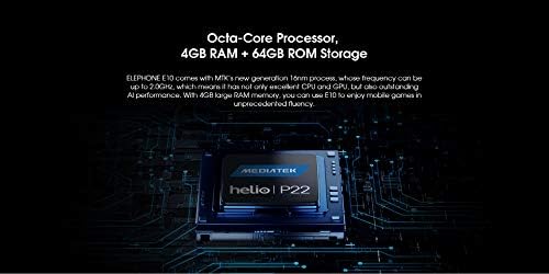 ★ 【Processore Octa-Core, 4 GB di RAM + 64 GB di memoria ROM:】 ELEPHONE E10 viene fornito con il processo a 16 nm di nuova generazione MTK, la cui frequenza può arrivare fino a 2,0 GHz, il che significa che non ha solo CPU e GPU eccellenti, ma anche eccezionali prestazioni AI . Con 4 GB di RAM di grandi dimensioni e 64 GB di ROM, puoi usare E10 per divertirti con i giochi mobili con una fluidità senza precedenti.