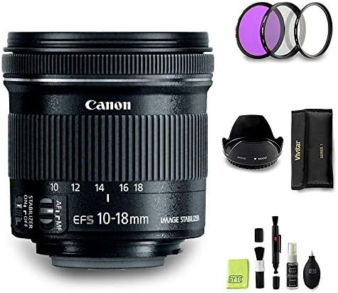 GYTE BUNDLE | Obiettivo Canon - EF-S 10-18mm f/4.5-5.6 IS STM - Teleobiettivo per Fotocamera Digitale Reflex + 3 Pezzi Kit di Filtri + Paraluce + Kit di Pulizia | Pacchetto Accessori Premium